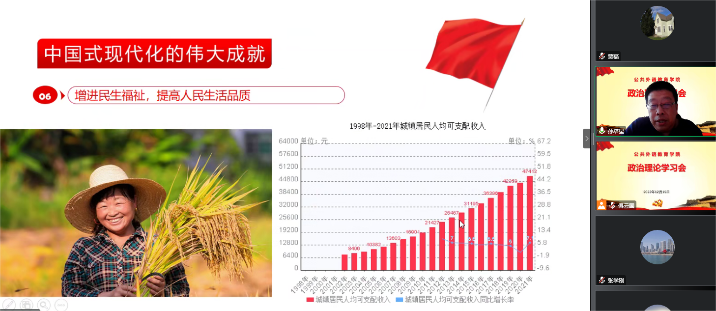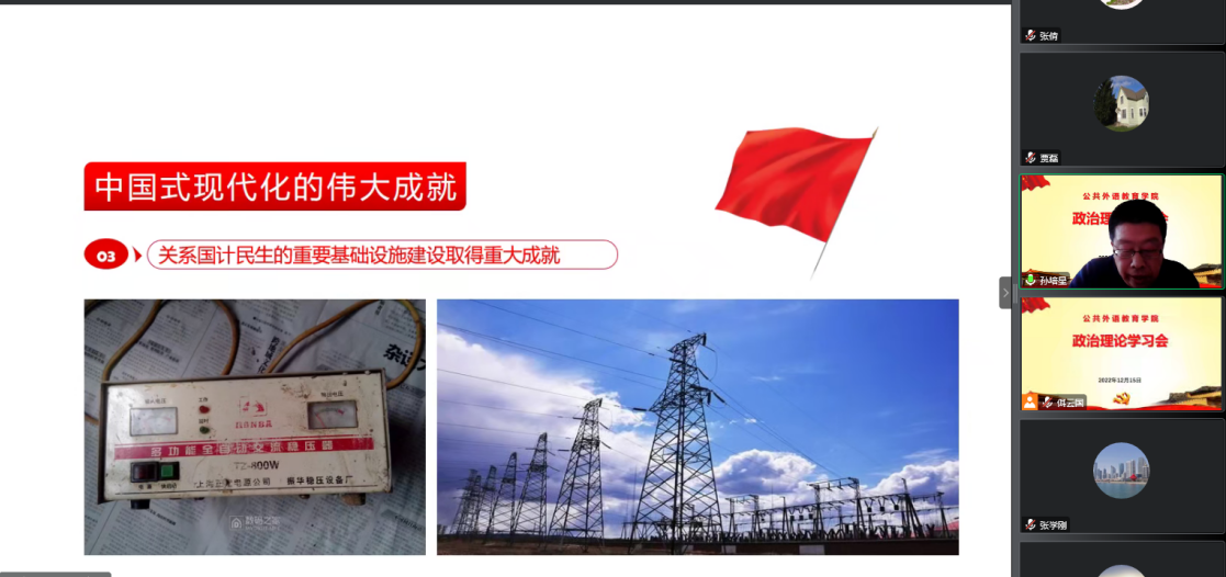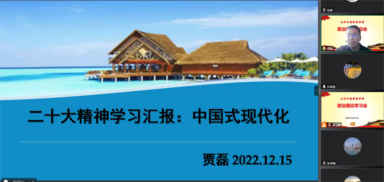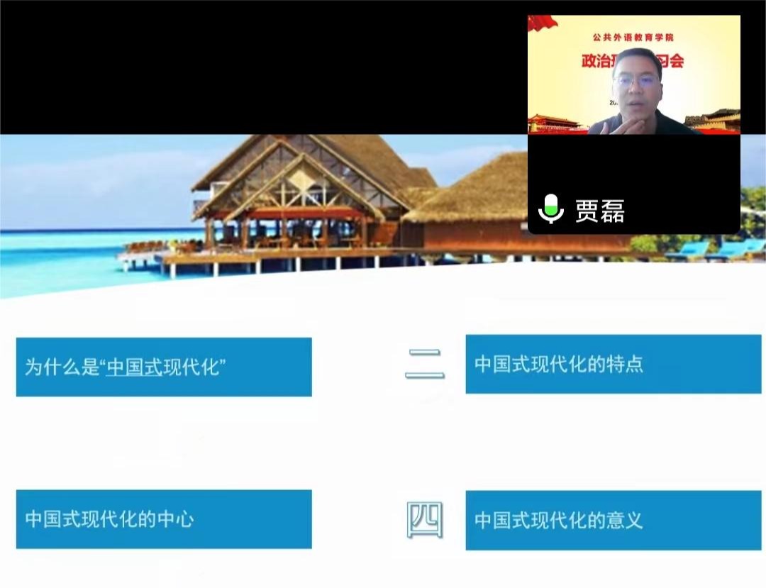 举办了中国式现代化专题党课。学院领导班子成员、全体教职工线上参会,学院党委书记刘海荣主持,孙培星和贾磊老师分别作了主题发言。