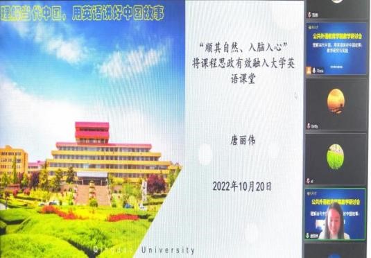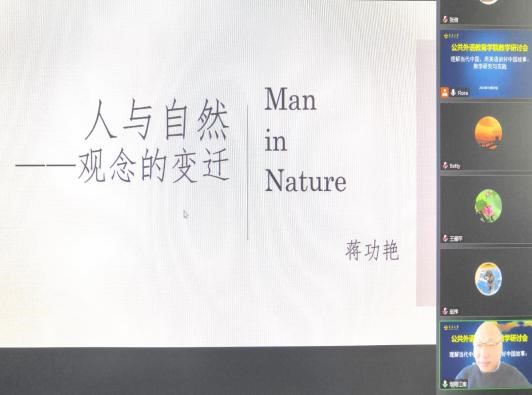 研讨会上,来庆彬老师从宏观角度就“理解当代中国”进行政策性解读;赵伟老师深耕课堂教学,从“何为,为何,如何”为切入点娓娓道来;蒋功艳老师旁征博引,从哲学、社会、文化等角度谈“人与自然”观念的变迁;唐丽伟老师以“顺其自然,入脑入心”为题,结合课堂教学实践,给出了教改理论框架及大学英语与课程思政有效融入的实操案例。