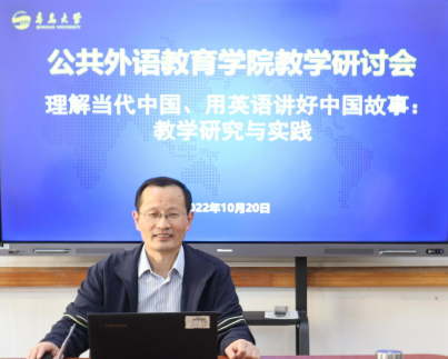 以“理解当代中国、用英语讲好中国故事:教学研究与实践”为题开展教学研讨。院长国林祥主持研讨。