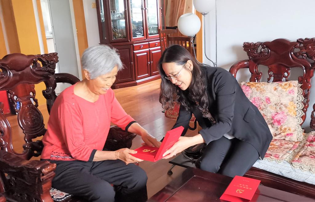 党委书记刘海荣一行走访慰问了“光荣在党50年”教工党员马淑英老师。