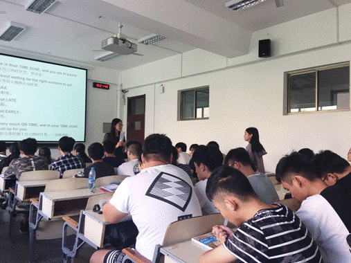 江老师以《新标准大学英语》第三册第一单元“Discovering yourself” 为题,对课程进行了精心设计。她以关于“时间”的一首小诗导入,巧妙地让同学们意识到每一个“现在”(present)都是一份天赐的“礼物”(gift)。潜移默化地引入了主题。授课过程中,江老师用优美的英语,稳定的语速以及极具亲和力的微笑,很快化解了与新班学生上课的陌生感。同时运用多媒体课件为学生创设生动有趣的学习情境,教学活动丰富多样,学生们在她的感召下积极配合回答每一个问题,师生互动十分热烈。整个课堂气氛活跃,教学效果良好,充分展示了大学英语教师扎实的基本功和与时俱进的教学理念与创新精神,获得了观摩教师的一致好评。