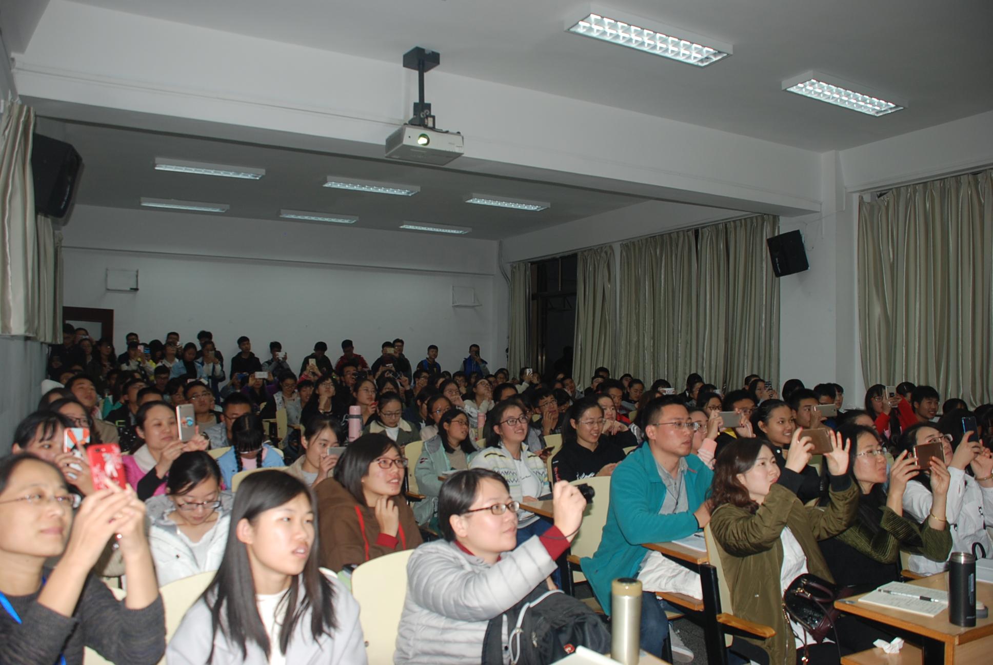 省内外高校的十余位老师与一百多名学生参加了讲座,主讲老师幽默的语言、渊博的知识,深深折服了学生。教室里座无虚席,现场掌声笑声连连,反响热烈。