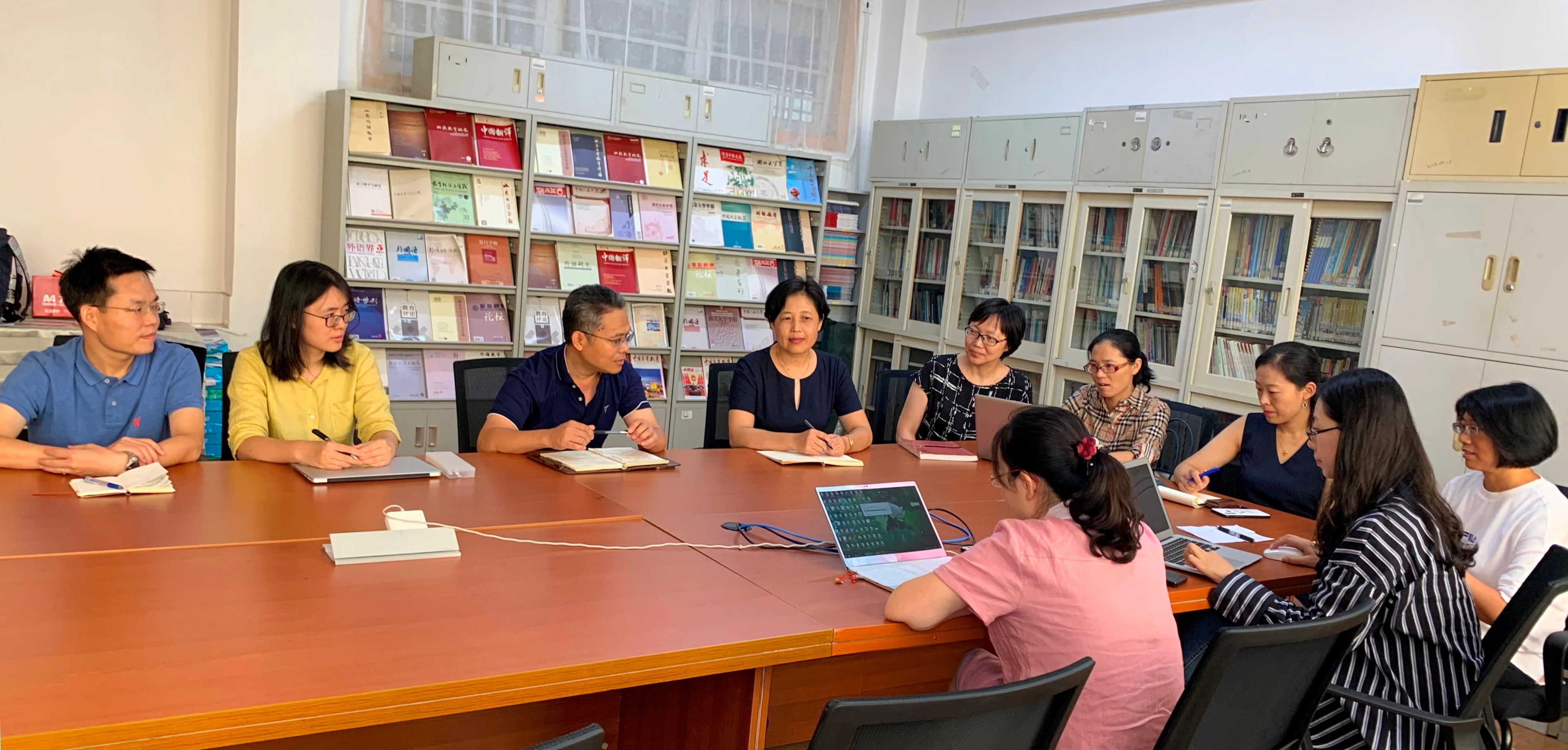 英语演讲与辩论、英语阅读、英语写作三支竞赛团队负责人分别汇报了备赛学生暑期培训情况。竞赛团队指导教师分工协作,各展所长,通过微课、教学视频、赛事录像、小组学习、个别辅导等多种形式对学生进行线上、线下专业辅导,成效显著。