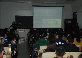 胥海红、胡淼两位老师主讲,针对目前大学生感兴趣的托福和雅思考试进行全面的介绍和重点突出的备考指导。两位老师分别对这两种考试在听、说、读、写四个方面的形式、要求和难度做了讲解,让在校大学生充分认识到了面对此类高要求、高难度的国际化考试自己应该作何准备从容面对。省内外高校的十余位老师与一百多名学生参加了讲座,主讲老师用她们幽默的语言、渊博的知识、细致的讲解为到场听众们呈现了一场“走向国际化”的大餐。现场反响极为热烈,讲座后有些老师和同学踊跃提问,并纷纷表示收获颇多。