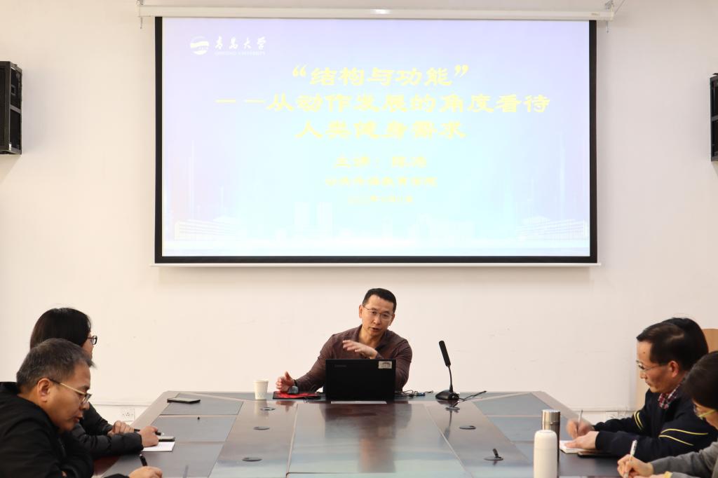 体育学院陈浩副教授作了题为“‘结构与功能’——从动作发展的角度看待人类健身需求”的健康知识讲座。