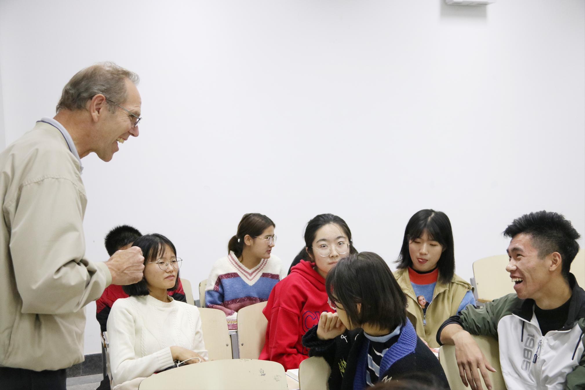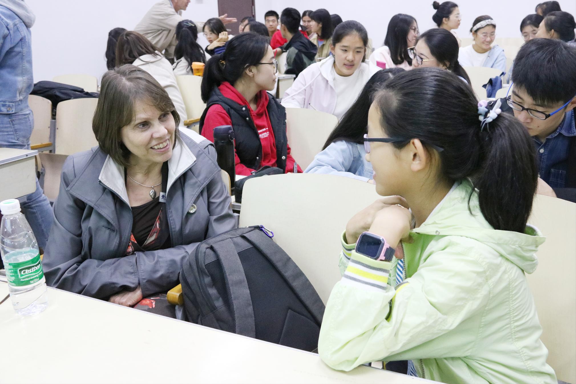 Ivan Franck、Sterling Larsen和Carol Larsen老师和同学们一起分享了如何直面挫折、永不放弃的话题。