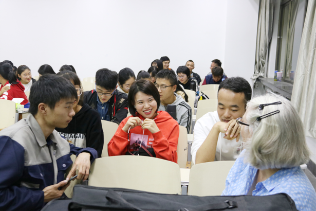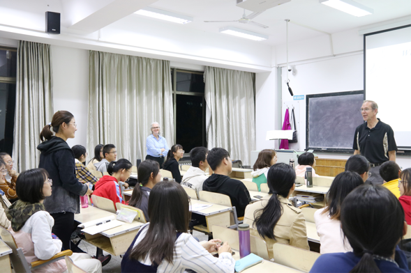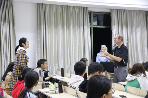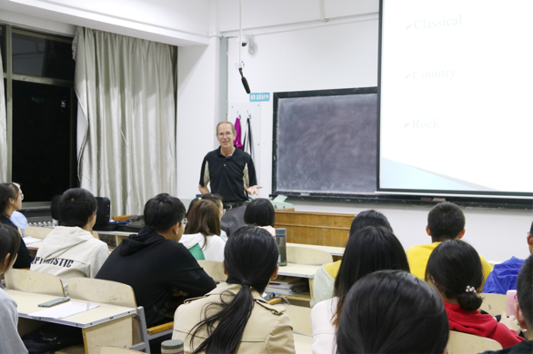 外教Sterling Larsen、Carol Larsen、Ivan Franck三位老师和同学们一起分享了不一样的音乐故事,感受听歌学英语的别样乐趣。