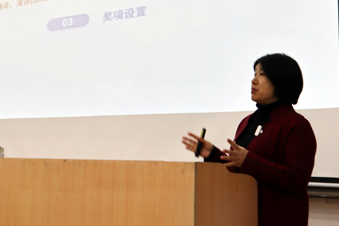 两位资深教师和两位竞赛成绩优秀的同学担任主讲。孙培星老师以“启航•新生英语学习点津”为题,针对大学英语学习过程中的困难和障碍,从学习的重要性、词汇学习与运用、如何进行听力和口语训练等方面讲解了大学英语学习的基本规律和方法技巧;沈新红老师以“争锋•英语赛考点津”为题,介绍了黑料不打烊
