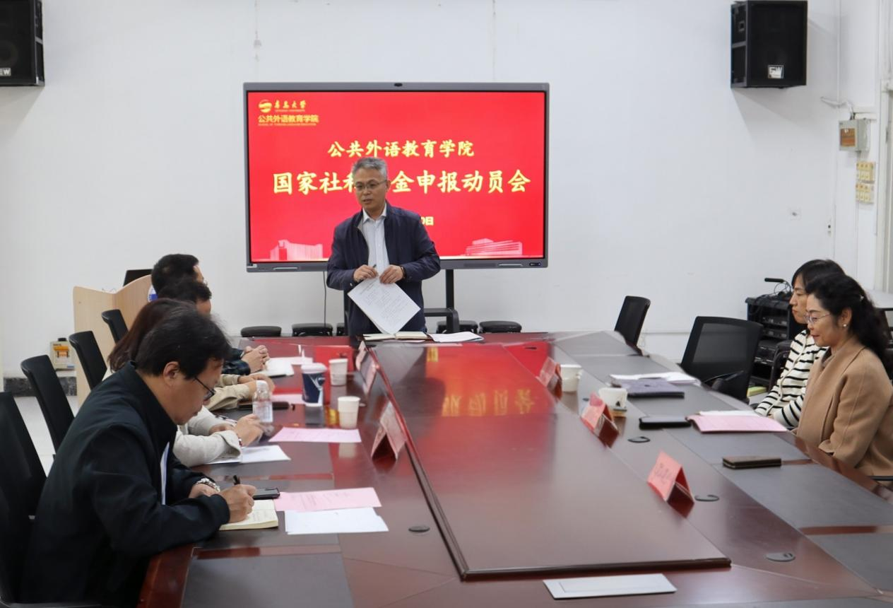于睿思楼202会议室召开2026年度国家社科基金项目申报动员会。人文社科处副处长刘玉魏、学院党委书记甄淑华、院长国林祥、副院长陈安榕、佴云国及拟申报的教师代表参会。会议由国林祥主持。