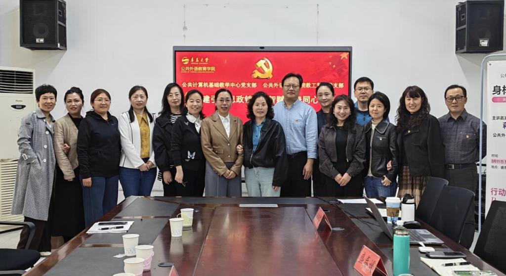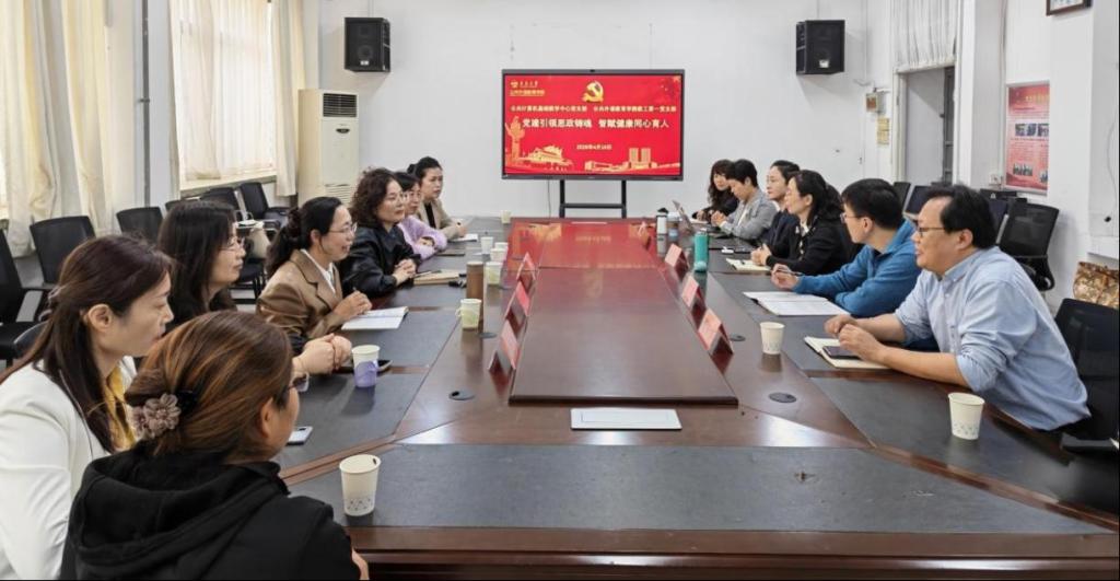 双方随后围绕“党建引领思政铸魂,智赋健康同心育人”主题展开协同育人研讨。与会党员就大学英语教学现状、学生学习动态及教学质量提升路径进行深入交流,共同探讨激发学生兴趣、提高学习实效的教学策略。