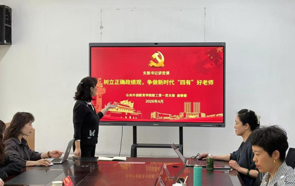 随后,盛春媛以“树立正确政绩观,争做新时代‘四有’好老师”为主题讲授专题党课。她结合立德树人根本任务,鼓励党员教师深耕教学科研,积极对接国家战略需求,在教育事业中践行初心使命。