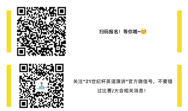 参赛者可关注微信公众号“21世纪杯英语演讲或通过大赛官方网站(//contest.i21st.cn/)注册报名。