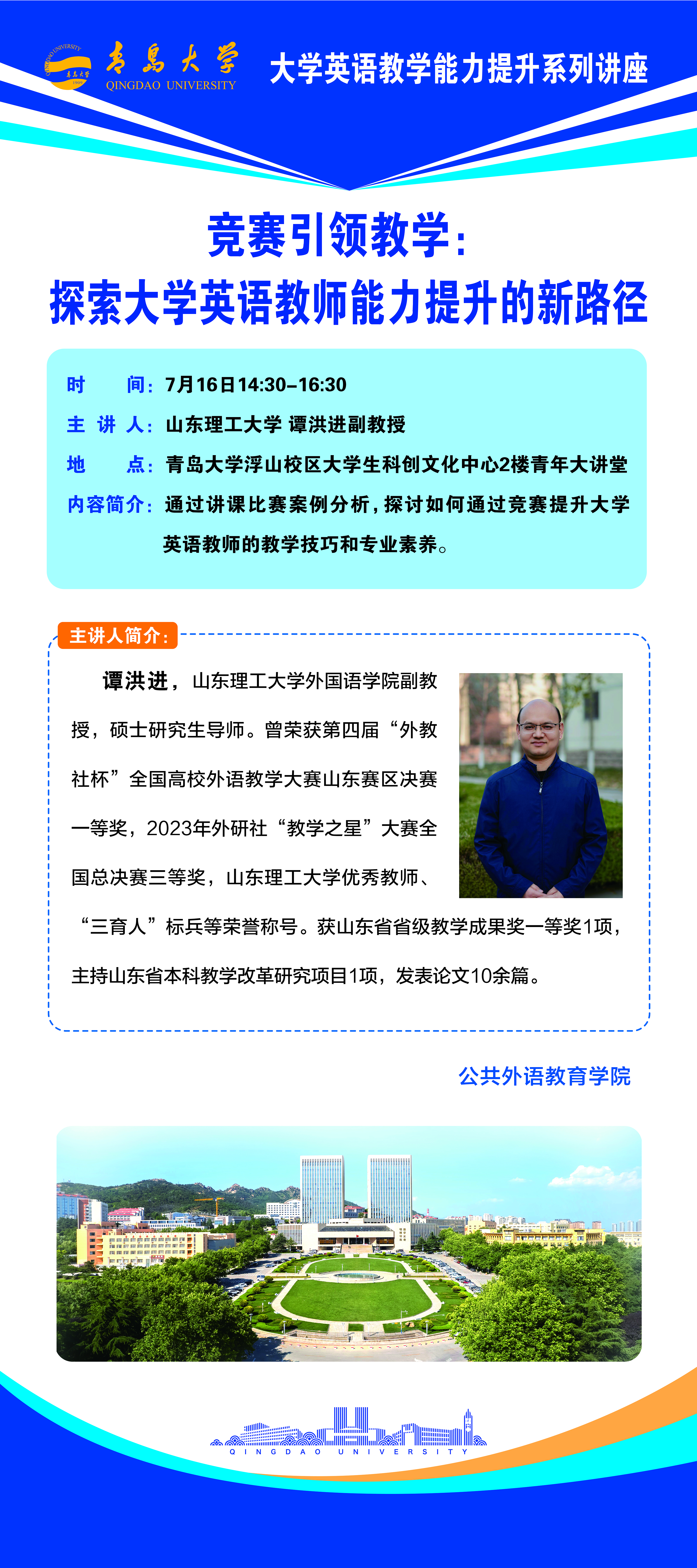 【学术讲座】谭洪进副教授:竞赛引领教学:探索大学英语教师能力提升的新路径
