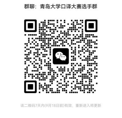 口译大赛微信群(二维码如下)完成校内报名,比赛相关信息通过微信群发布。
