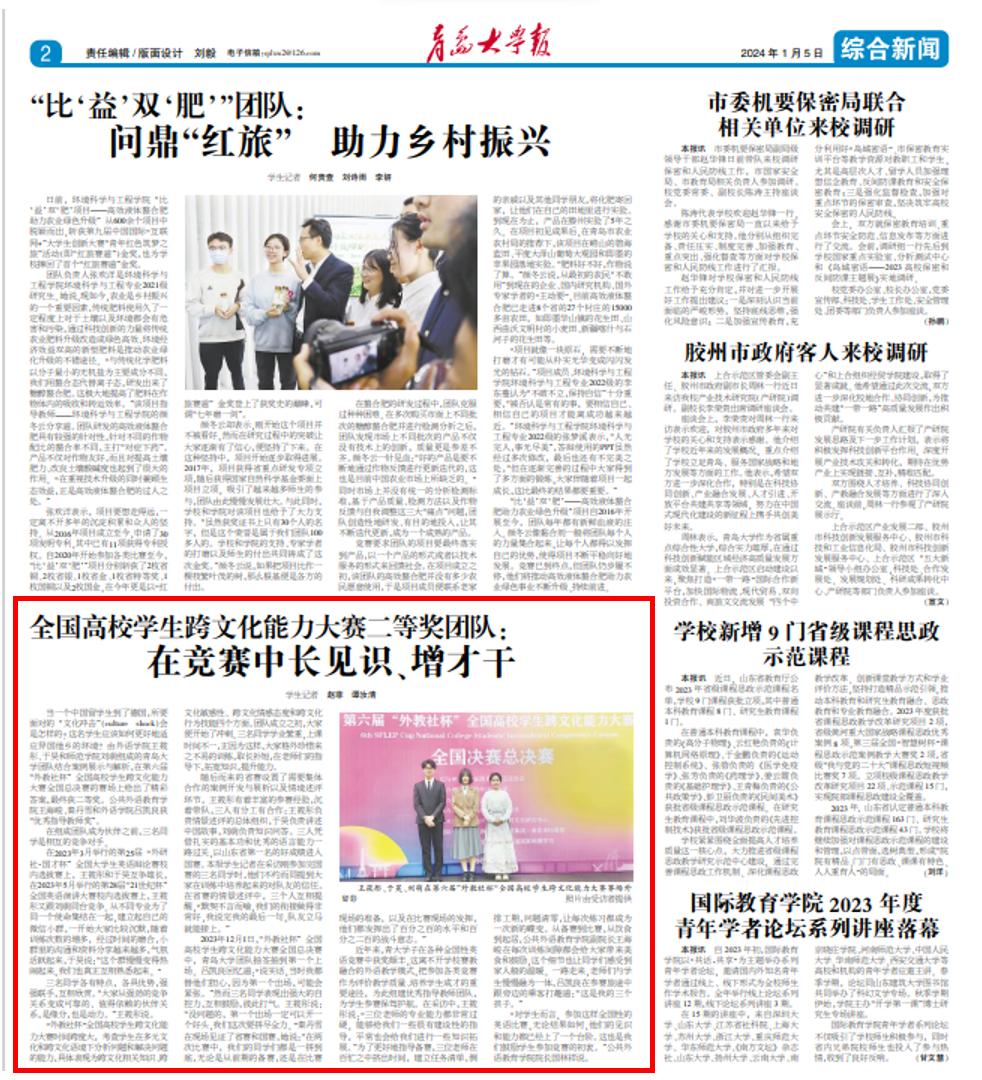 报》以《全国高校学生跨文化能力大赛二等奖团队: 在竞赛中长见识、增才干》为题,报道了我校跨文化能力大赛团队。由外语学院王筱彤、于昊和师范学院刘萌组成的黑料不打烊
