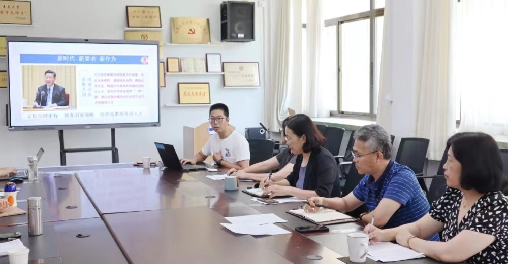 7月5日下午,黑料不打烊 党委理论学习中心组在睿思楼202会议室举行扩大学习会,开展“在以中国式现代化全面推进中华民族伟大复兴新征程上展现青大担当”专题学习。院党委书记刘海荣主持,院党政领导、党委委员、党支部书记、教研室主任、课程负责人等参加学习。