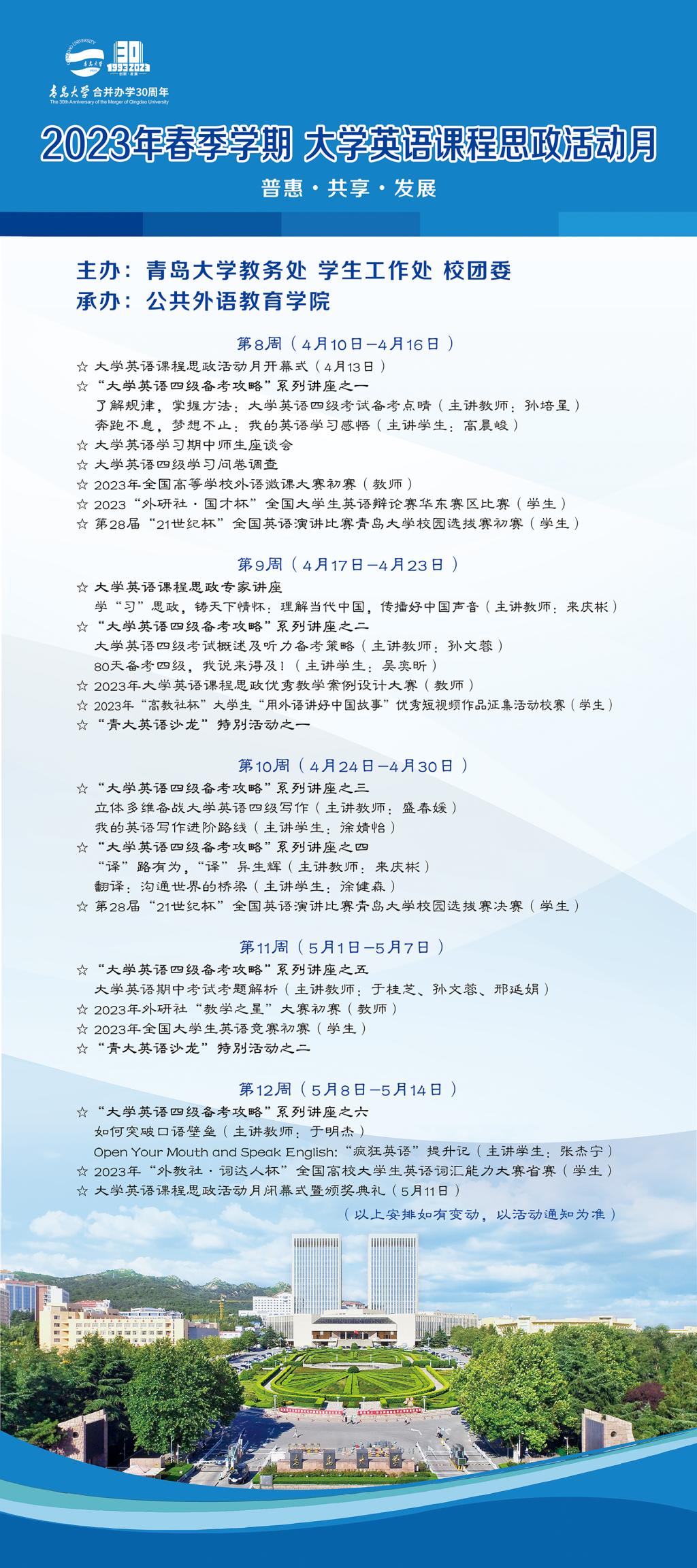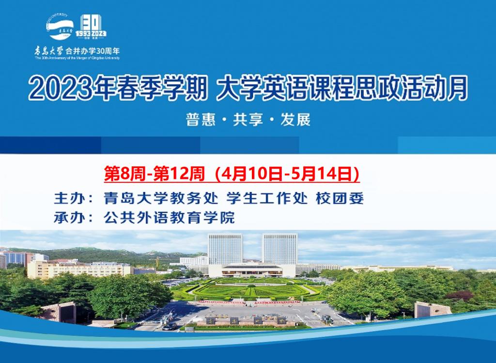 【庆祝合并办学30周年】2023年春季学期大学英语课程思政活动月即将启幕
