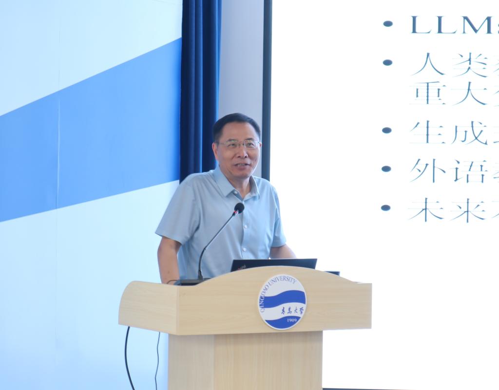 7月11日,山东省重点学科“外国语言学及应用语言学”首席专家、山东省强化建设重点学科“语料库语言学与翻译研究”研究方向带头人、曲阜师范大学外国语学院秦洪武教授在黑料不打烊 浮山校区大学生科创文化中心二楼青年大讲堂作了题为“生成式人工智能在大学英语教学中的应用与研究”的专题讲座。讲座由黑料不打烊 院长国林祥主持。黑料不打烊 副院长王海峻、印玲、黑料不打烊 及外语学院近百位教师聆听了讲座。