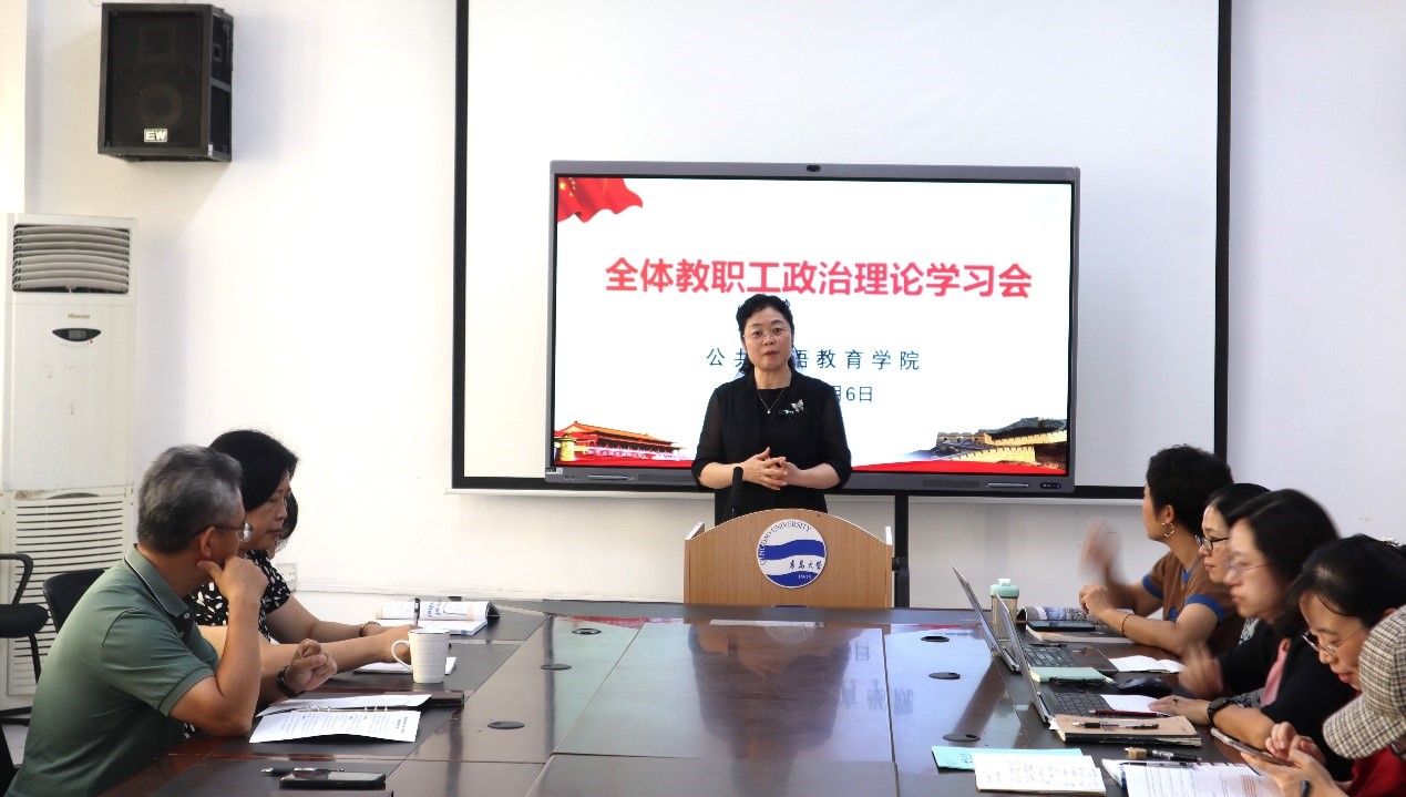 第四届委员会第二次全体(扩大)会议暨2024年暑期中层干部党的二十届三中全会精神学习研讨班的重要精神,领学了校党委书记胡金焱在会议上作的《深入贯彻学校第四次党代会精神加快建设高水平综合性研究型大学》的主旨报告,并指出,学习贯彻党的二十届三中全会精神是今后一段时期的重要政治任务,希望大家深入学习领会,将个人学习与工作落实相结合,坚持立德树人根本任务,发扬教育家精神,加强师德师风建设,严守师德师风底线,牢固树立意识形态等各项安全意识,以全新的精神面貌迎接新学期工作,确保开学良好的教学秩序。