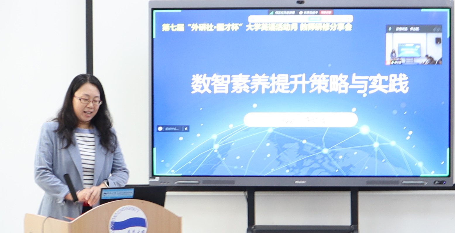 学院党委委员李晓敏领学了党的二十届三中全会《中共中央关于进一步全面深化改革、推进中国式现代化的决定》中“深化教育综合改革”部分内容,并回顾了党的二十大报告中关于教育的论述和习近平总书记在全国教育大会上的重要讲话精神。同时,结合暑期参加的外教社卓越教师发展论坛,作了《数智素养:持续提升策略与实践》的报告,从教育强国战略和教师素养发展入手,分享如何在业务工作中贯彻落实《决定》,提升数智时代大学外语教师教育教学能力,并初步探索大学英语智慧教学实践。